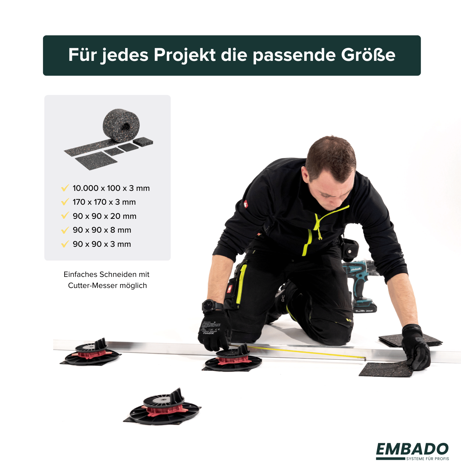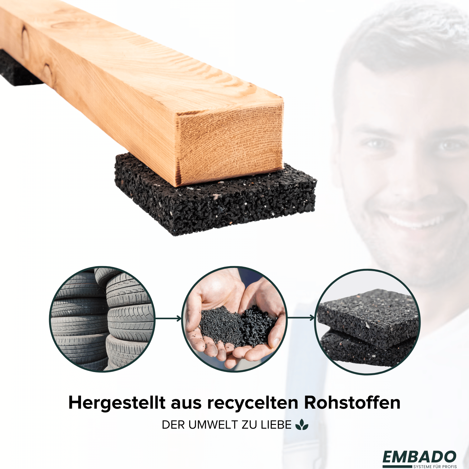 Granulatplatten (auch Gummipads, Granulatpads oder Terrassenpads genannt) sind die optimale Unterlage für Terrassendielen und -Platten aller Art und für Terrassen auf Stelzlager geeignet.