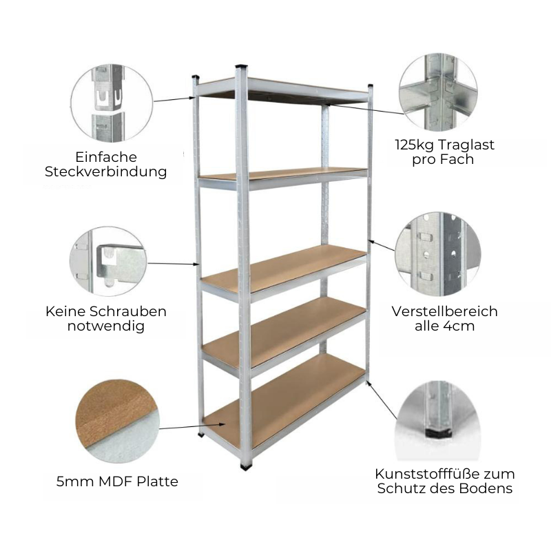- Langlebig & stabil: Das Schwerlastregal besteht aus einem Stahlgestell, jedes Fach kann bis zu 125 kg tragen. Mit dem mitgelieferten Kippschutz kann das Regal an der Wand befestigt werden, wodurch es stabiler und sicherer wird
