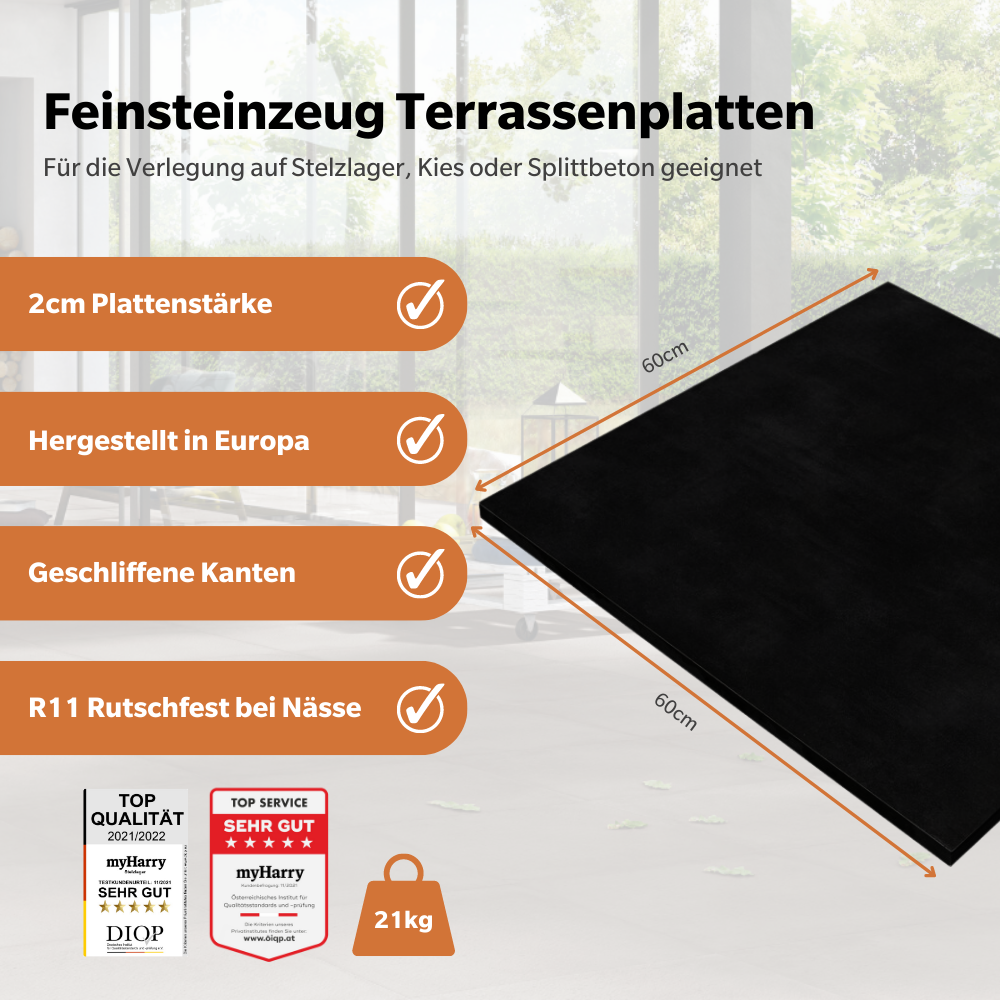 Wer sich den Traum einer neuen Terrasse erfüllen und darauf eine unvergessliche Zeit mit Freunden und Familie verbringen will, ist mit hochwertigen Terrassenplatten von myHarry bestens beraten. Durch jahrelange Entwicklung sind sie nicht nur besonders pflegeleicht und barfußfreundlich, sondern auch robuster und langlebiger als herkömmliche Terrassenplatten. Zusätzlich sind die Platten besonders rutschhemmend und frostbeständig, sodass auch Kinder und Haustiere sorgenfrei darauf spielen können. Du ersparst dir zeitaufwendiges Streichen, Ölen oder Schleifen und kannst deine eigene Wohlfühloase in vollen Zügen genießen. Durch unser einmaliges Stelzlagersystem wird das Verlegen auch ohne Vorerfahrung zum Kinderspiel.